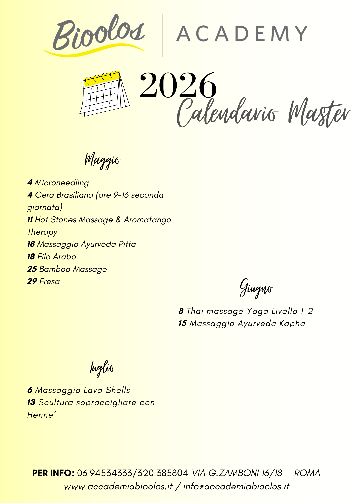 CALENDARIO MASTER BIOOLOS magg – lug